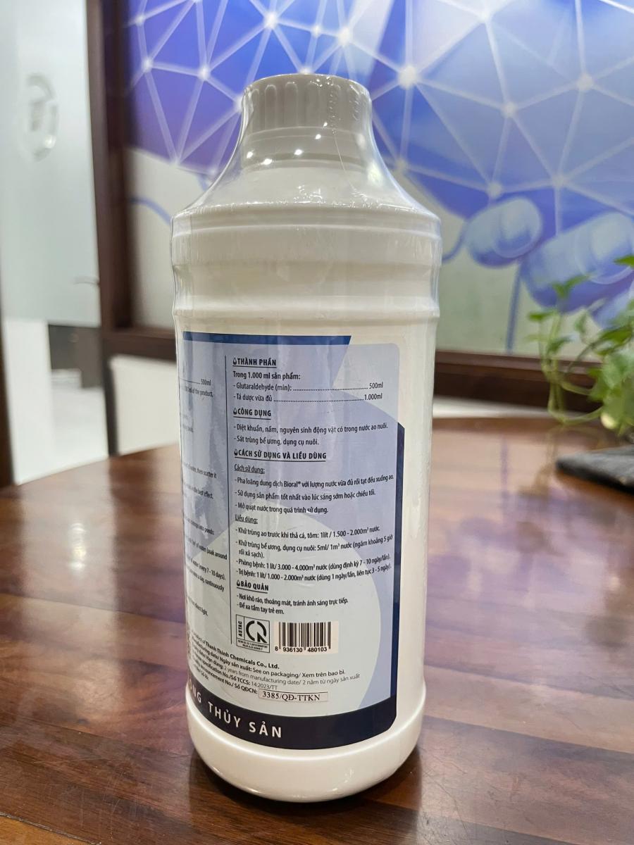 - Khử trùng bể ương, dụng cụ nuôi: 5ml/1m3 nước (ngâm khoảng 5 giờ rồi xả sạch)