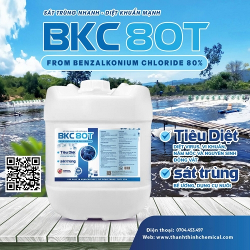 BKC 80T - BKC 80% (20 lít/can) - Diệt virus, vi khuẩn, nấm mốc, nguyên sinh động vật gây bệnh, khử trùng bể ương, dụng cụ nuôi