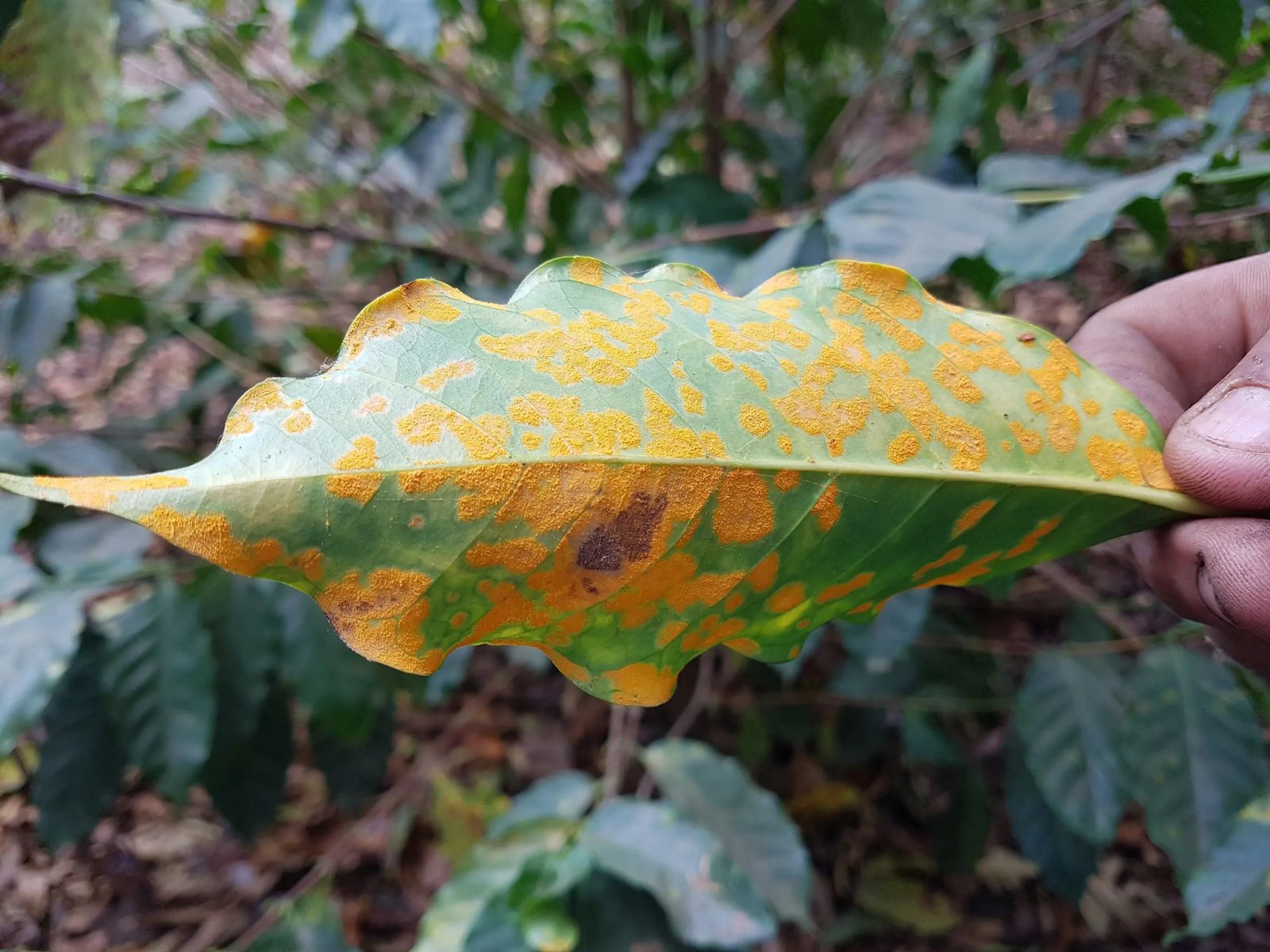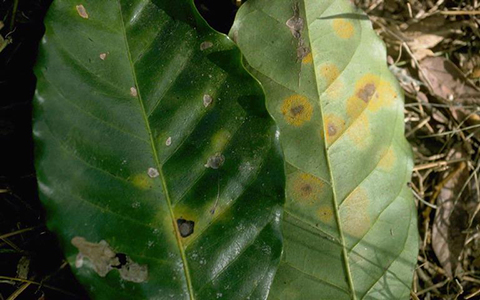 Bệnh gỉ sắt là một trong những bệnh phổ biến và nguy hiểm nhất trên cây cà phê, đặc biệt là trong mùa mưa. Nấm Hemileia vastatrix gây ra các đốm màu vàng hoặc cam trên mặt dưới lá. Theo thời gian, các đốm này lớn dần và lan rộng, làm lá bị rụng sớm, ảnh hưởng đến quá trình quang hợp của cây và từ đó làm giảm năng suất.