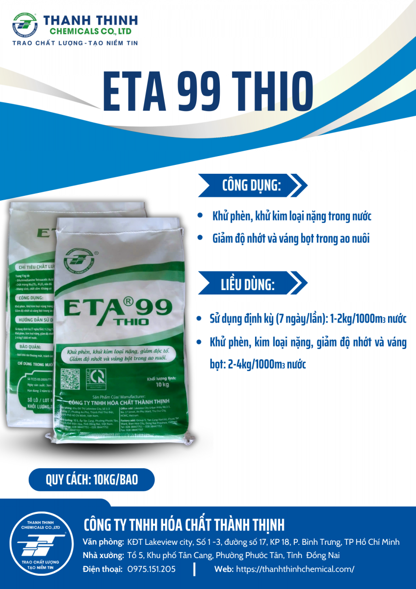 ETA®99 THIO - Khử phèn, kim loại nặng, giảm độ nhớt và váng bột trong ao nuôi