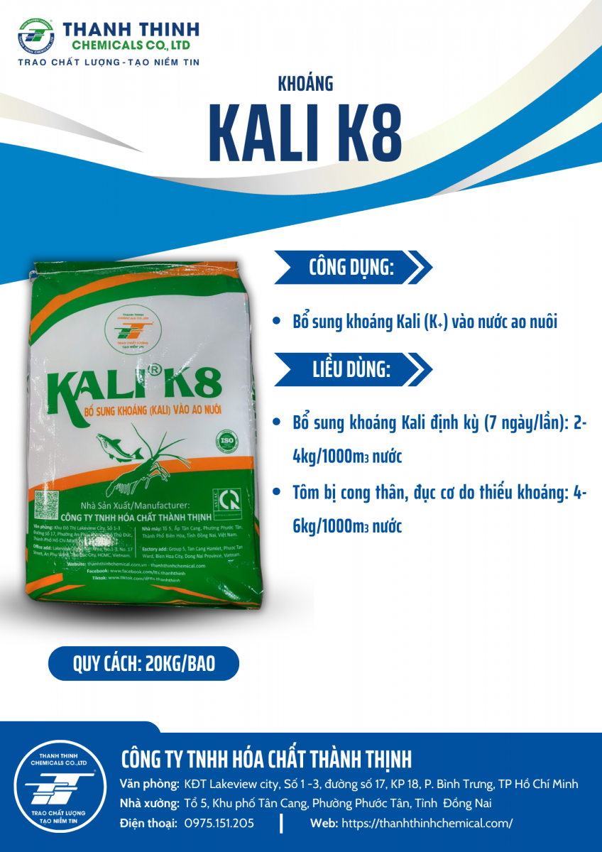 KALI®K8 - Bổ sung khoáng Kali vào nước ao nuôi