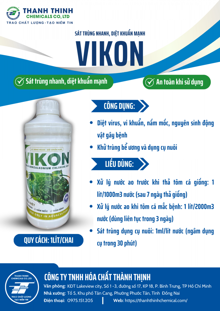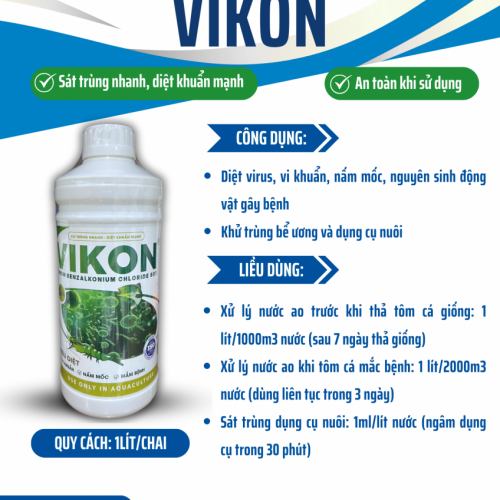 VIKON® - Diệt virus, vi khuẩn, nấm mốc, nguyên sinh động vật gây bệnh, khử trùng bể ương, dụng cụ nuôi