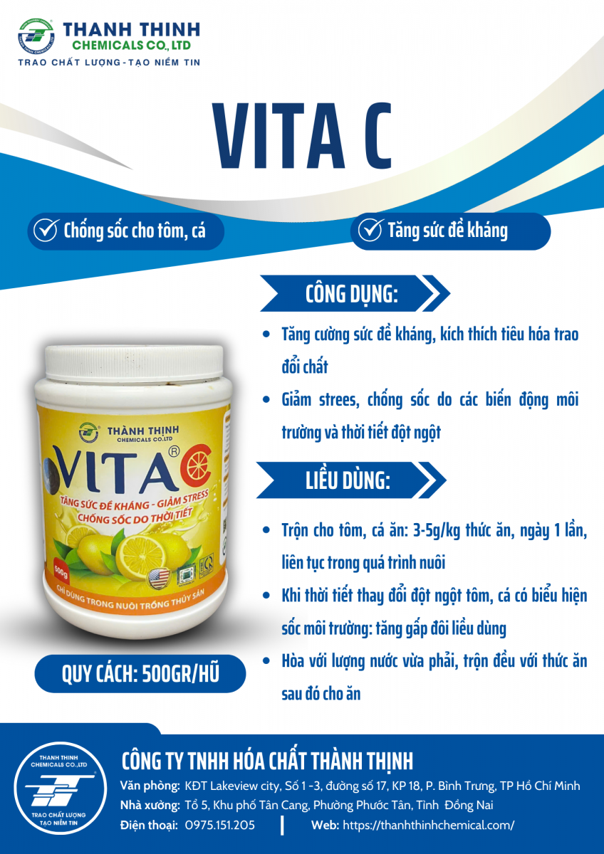 VITA®C (500 g/hủ) - Tăng cường sức đề kháng, kích thích tiêu hóa trao đổi chất, Giảm stress, chống sốc do các biến động môi trường đột ngột